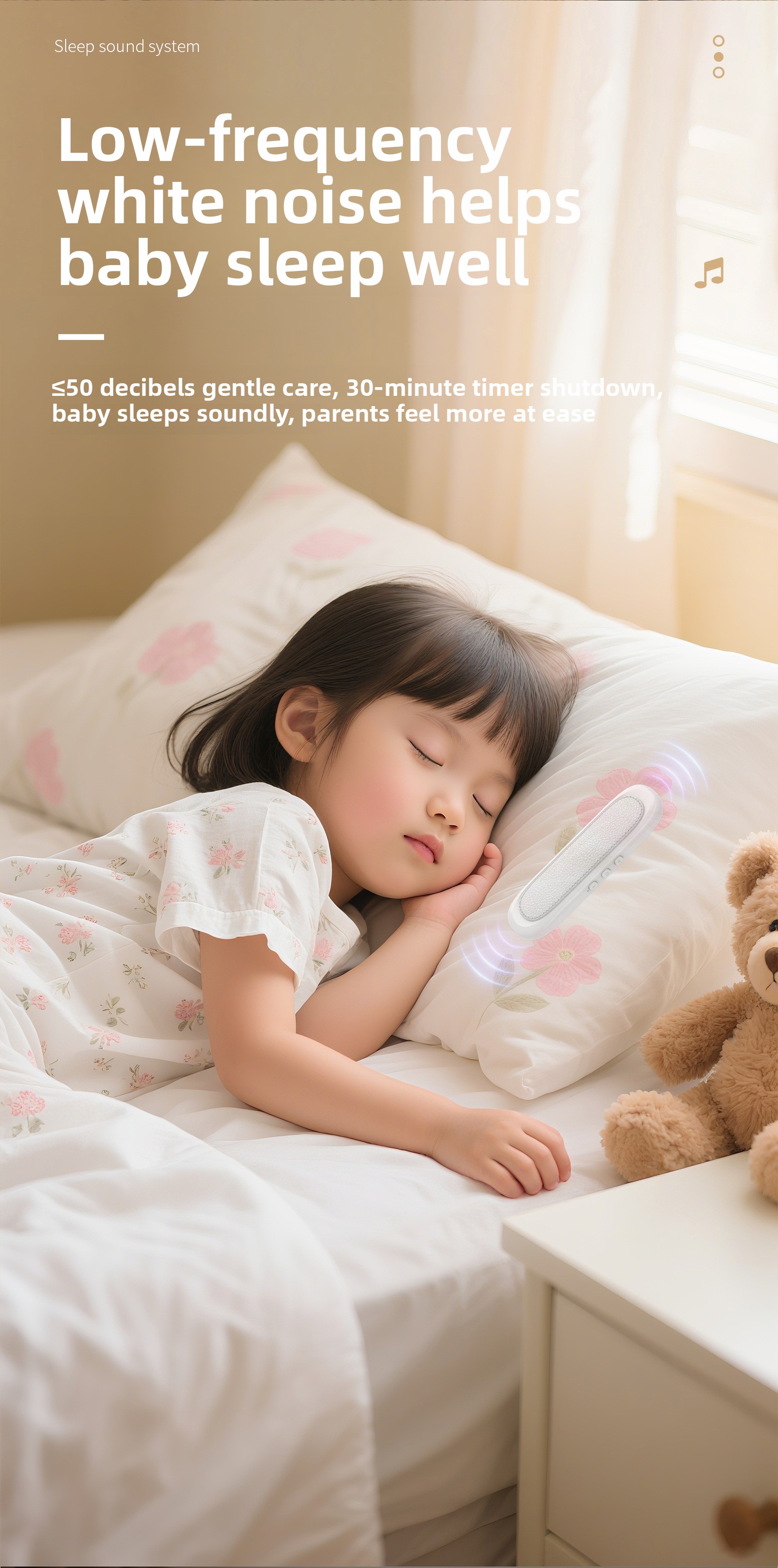Sleep Assistance: Designed specifically for sleep support with white noise and soothing sound features.