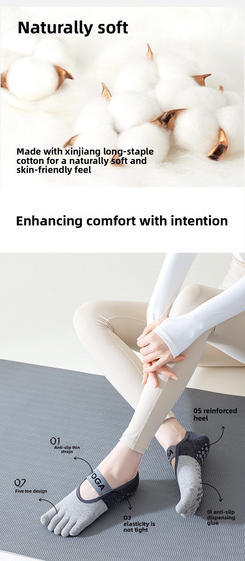 Five-Toe Structure: Enhances flexibility and mimics barefoot movement.