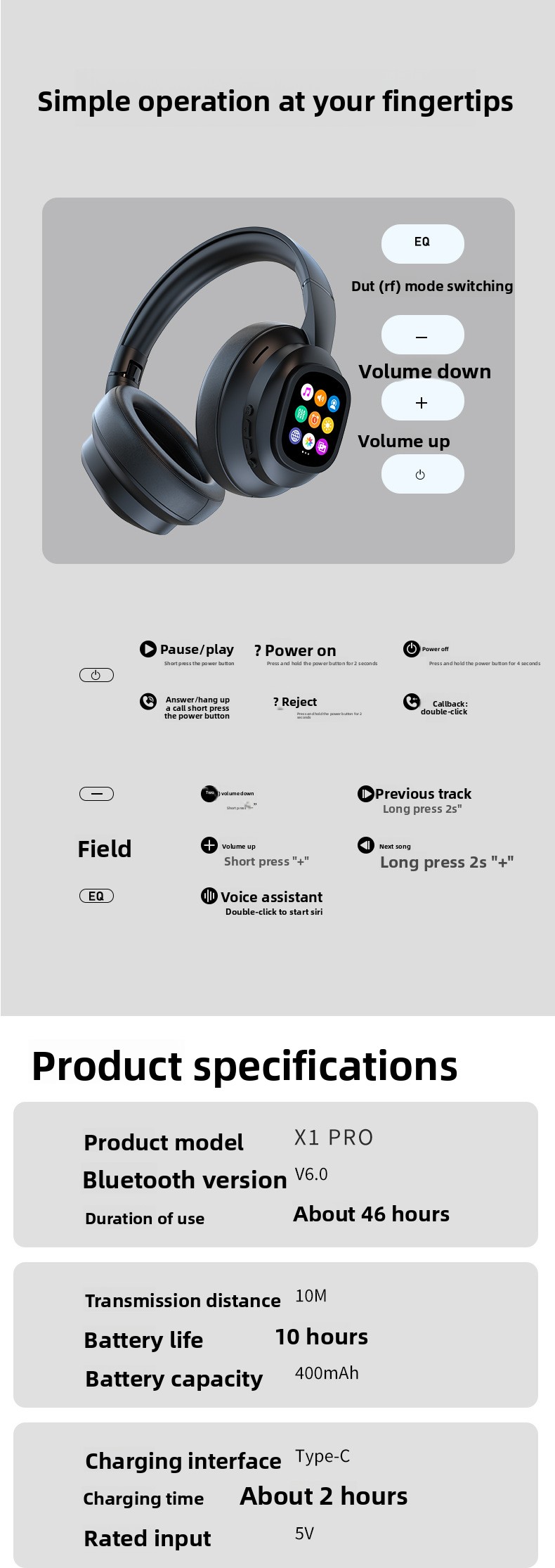 Features: Digital display, voice control, call function, breathing light, battery indicator, low latency mode