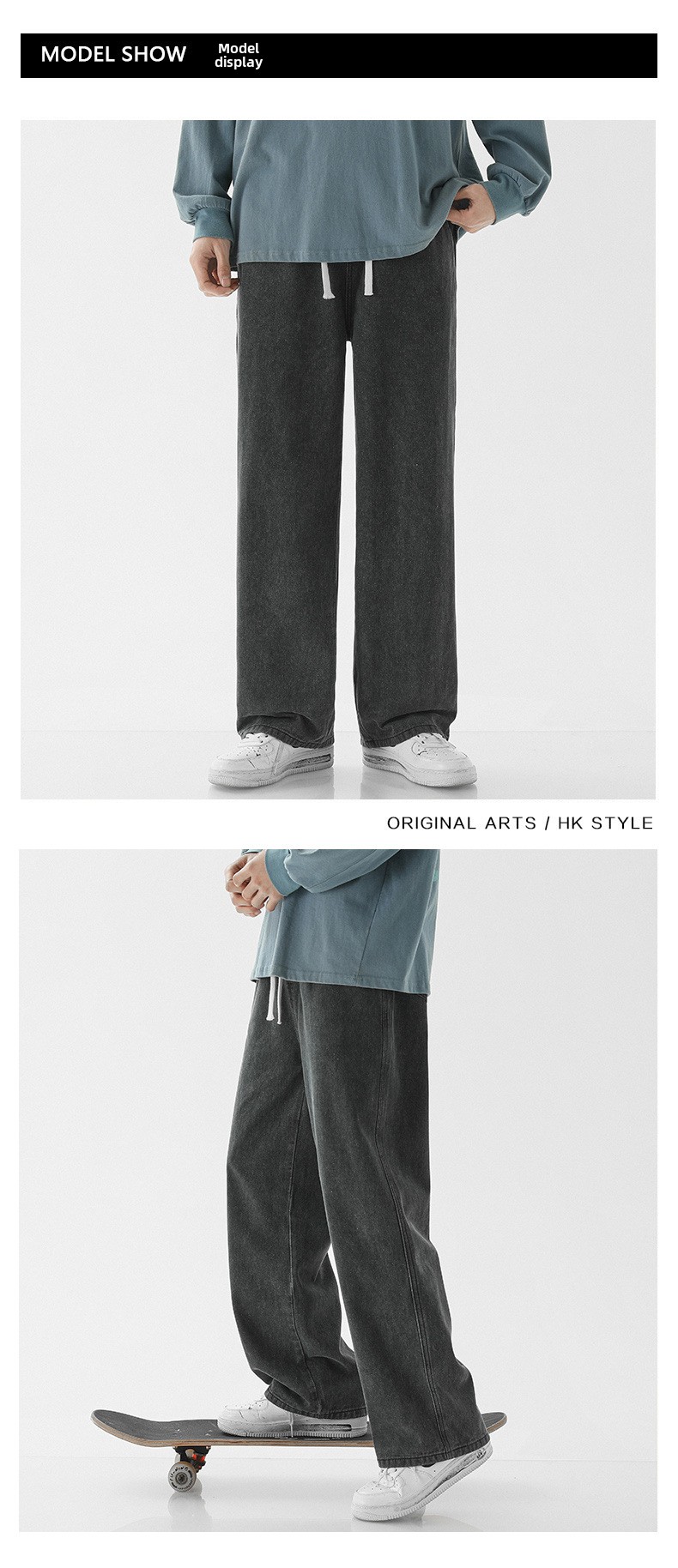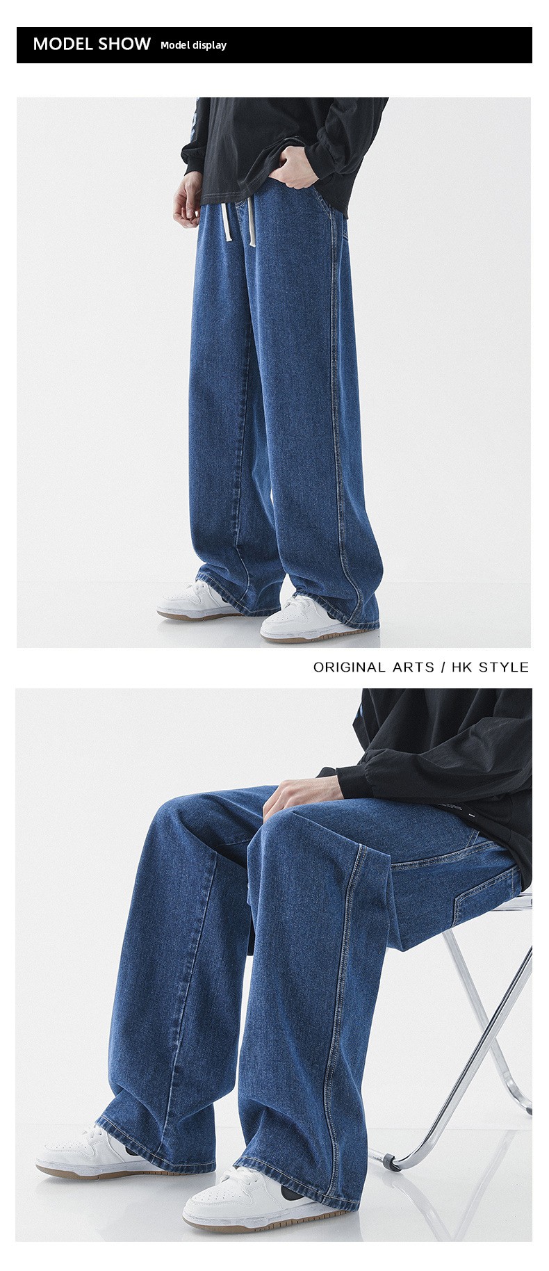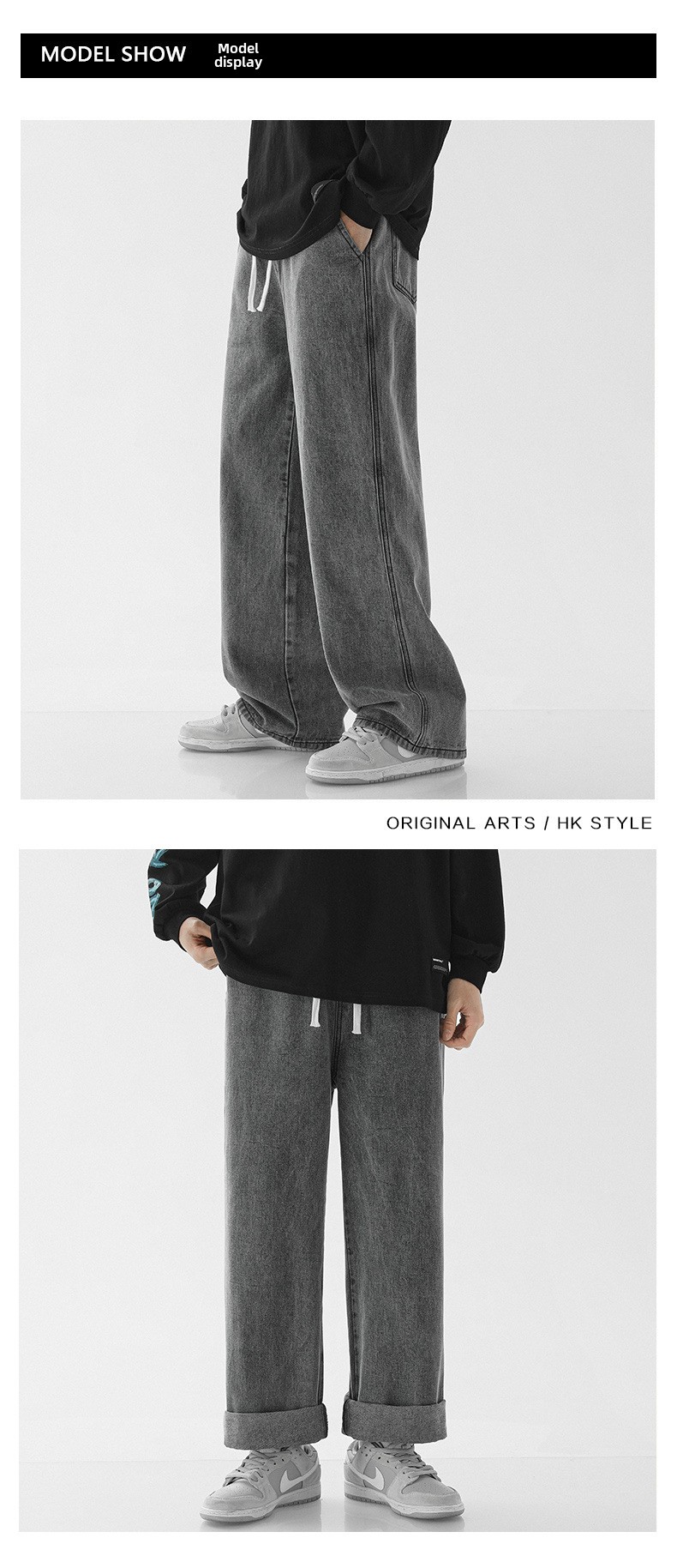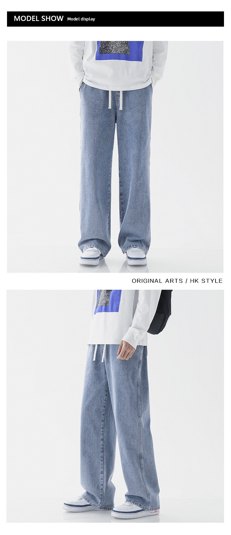 Streetwear Style: Baggy jeans with contemporary Harajuku-inspired design for urban fashion.