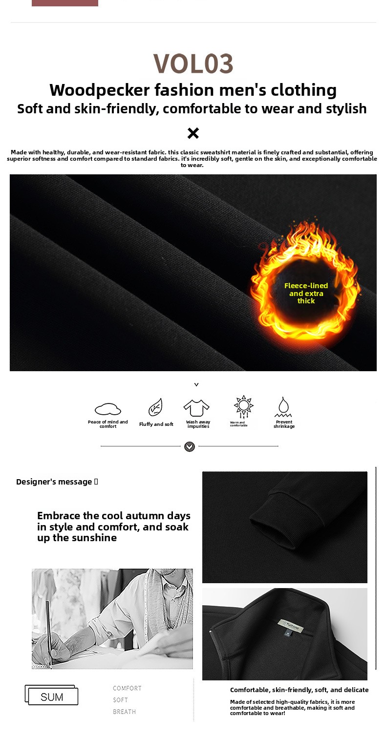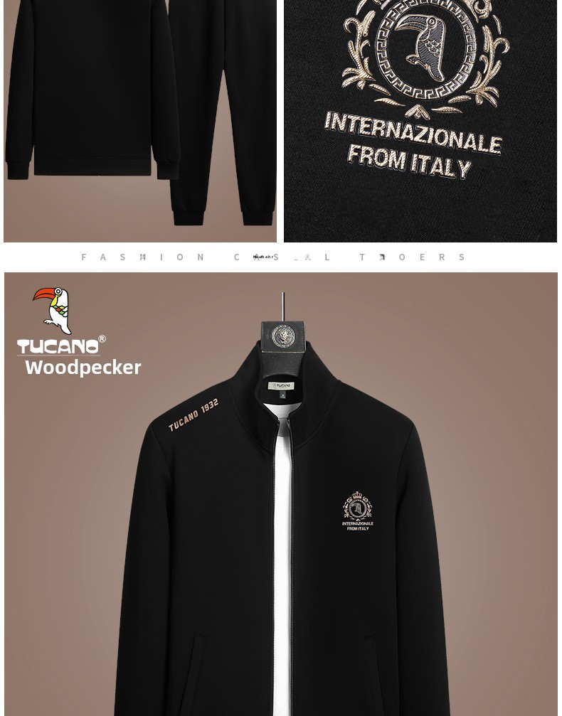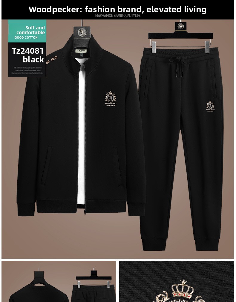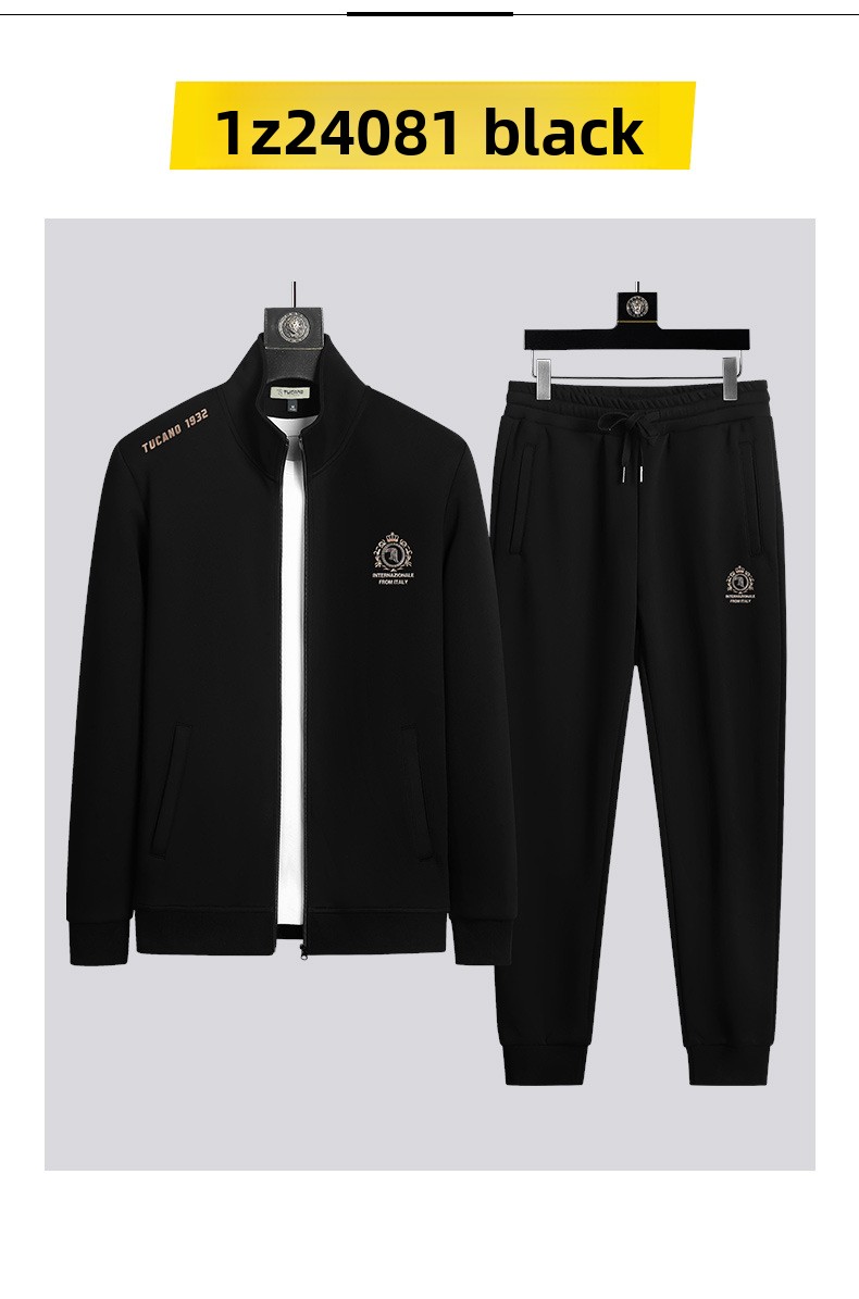 Versatile style: Zippered sweatshirt and tapered pants suitable for multiple occasions