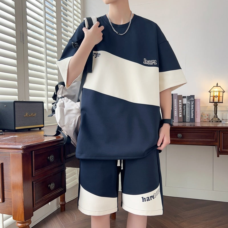 Modern style: Round neck T-shirt with loose-fit shorts for a trendy look