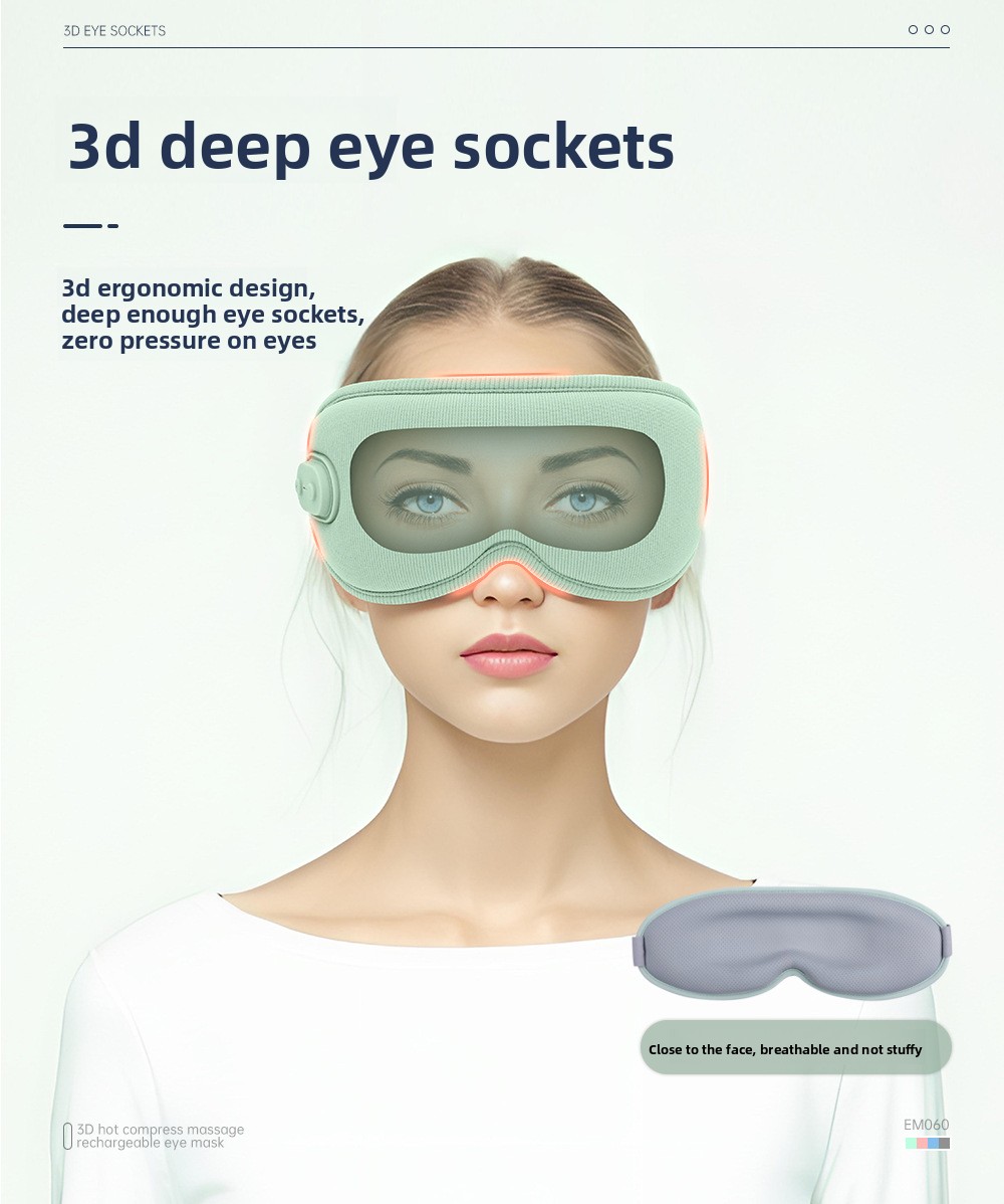 Functions: Heat compress, eye massage, eye protection, sleep aid, fatigue relief, light blocking, intelligent