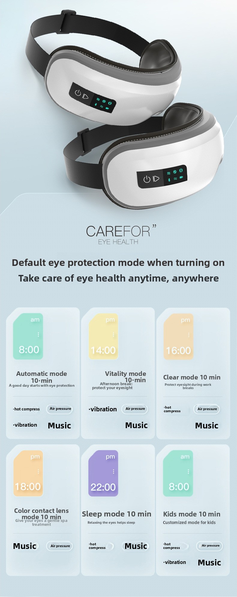 Massage Modes: Auto, Vitality, Refresh, Eye Beauty, Sleep, Child Mode