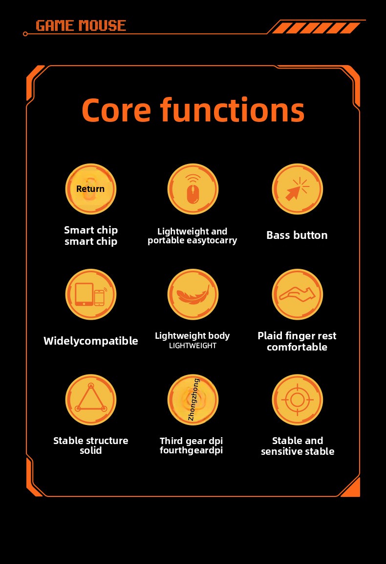 Six Adjustable DPI: Six-level resolution switching for precision.