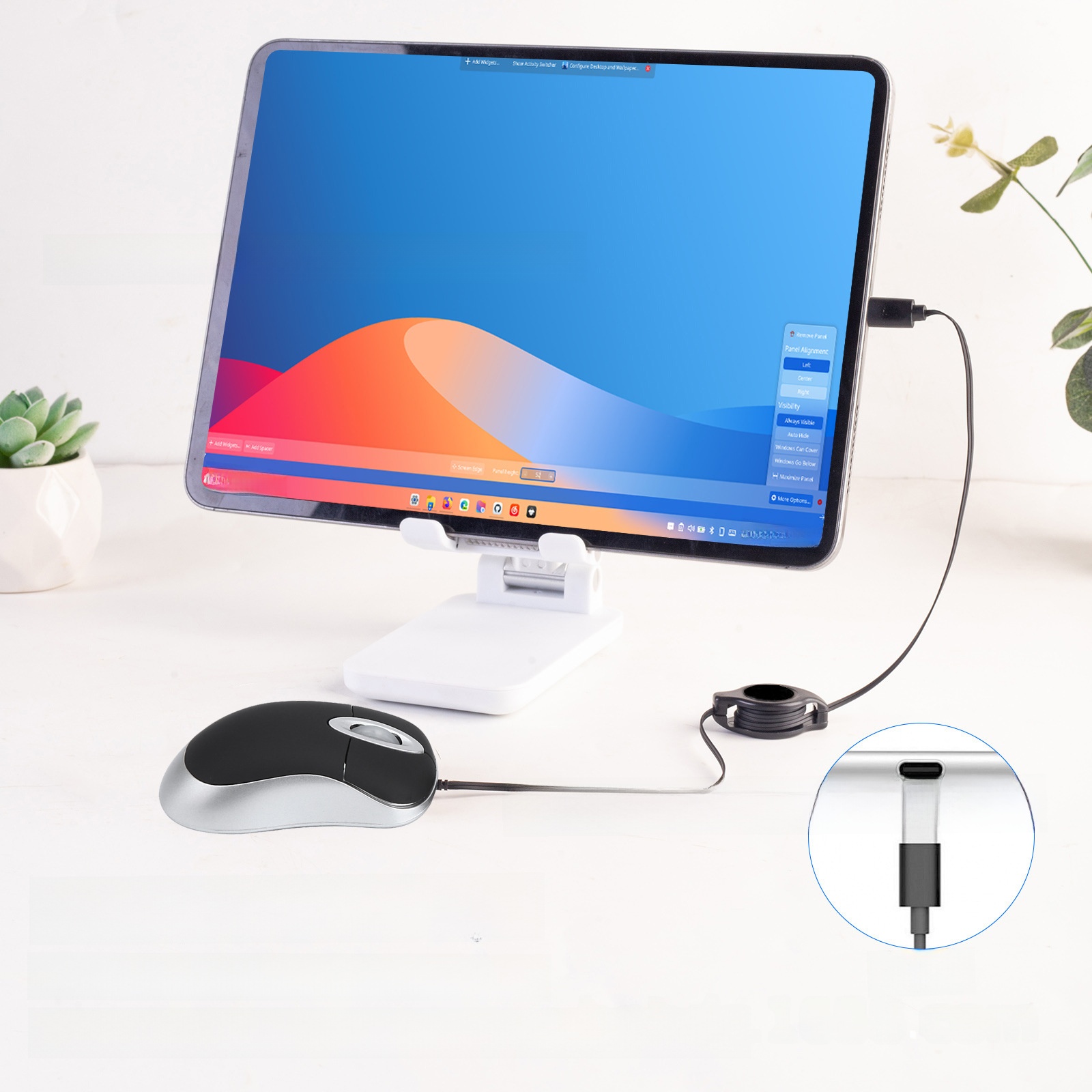 Retractable Cable: Integrated USB-C retractable cable for tidy storage and convenience.