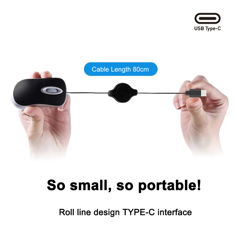 USB-C Wired Retractable Portable Mouse