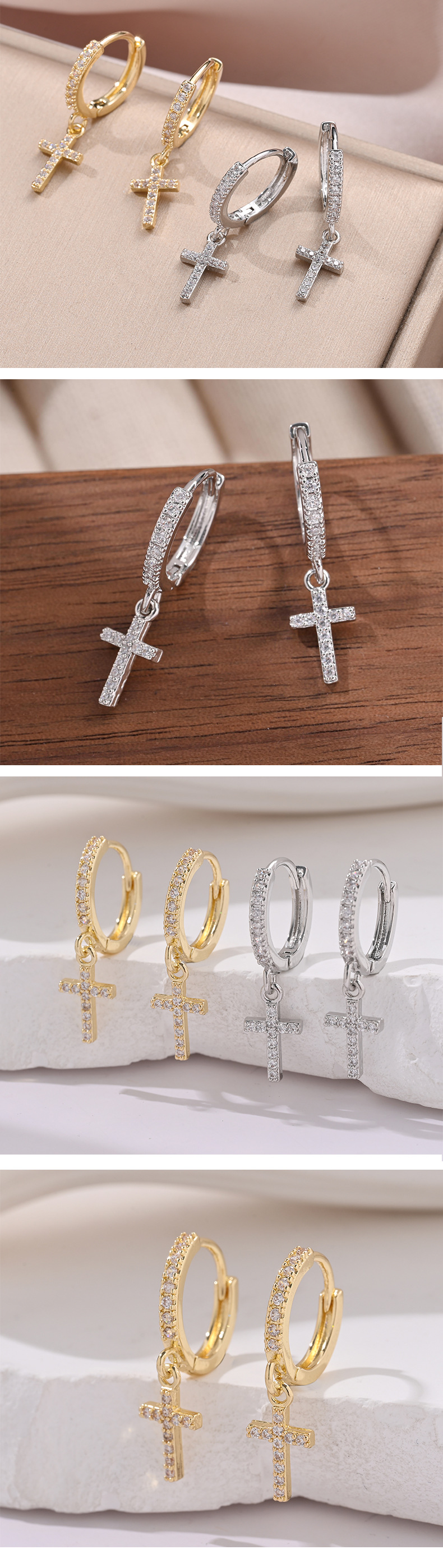 Elegant Design: Features geometric and cross-shaped pendants with zircon accents, combining modern and classic styles.