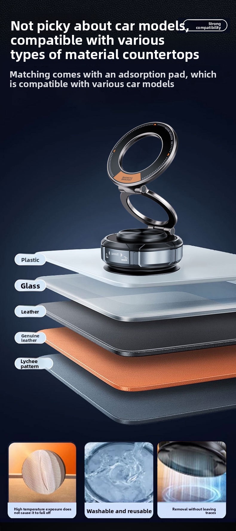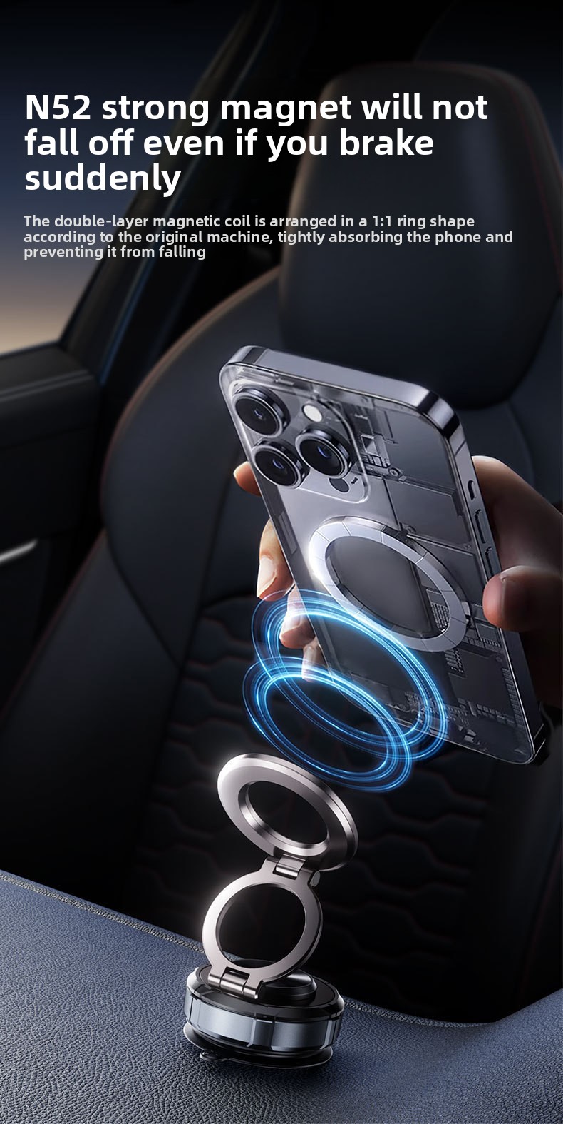 Vacuum Adsorption - Secure suction technology for stable phone placement on smooth surfaces