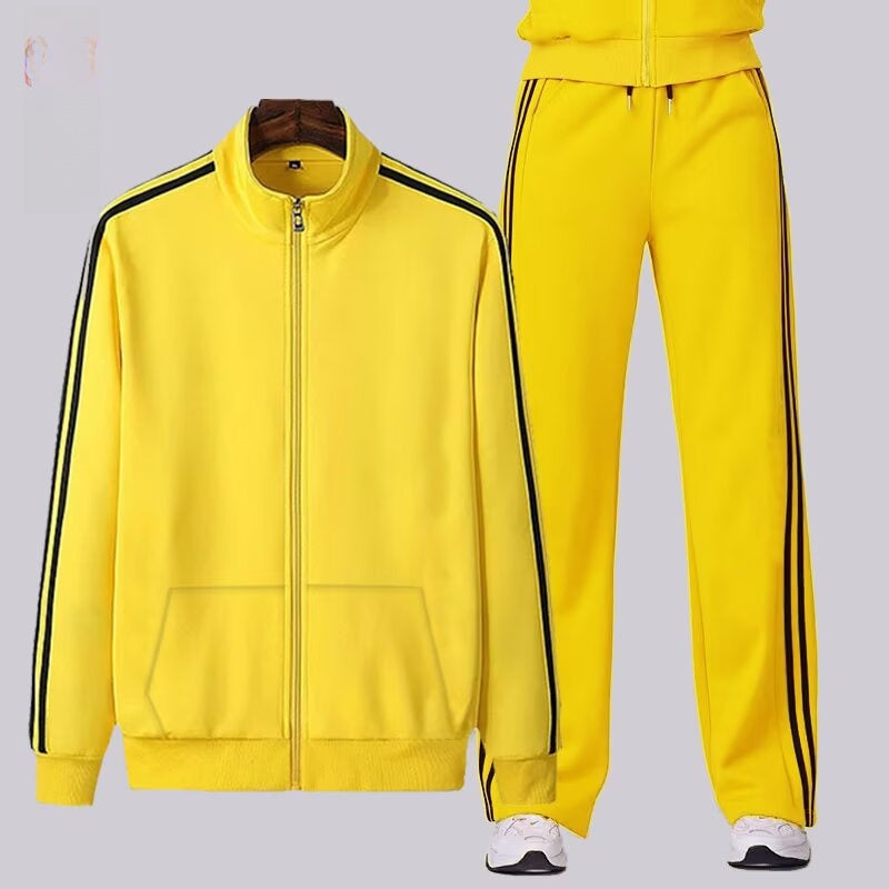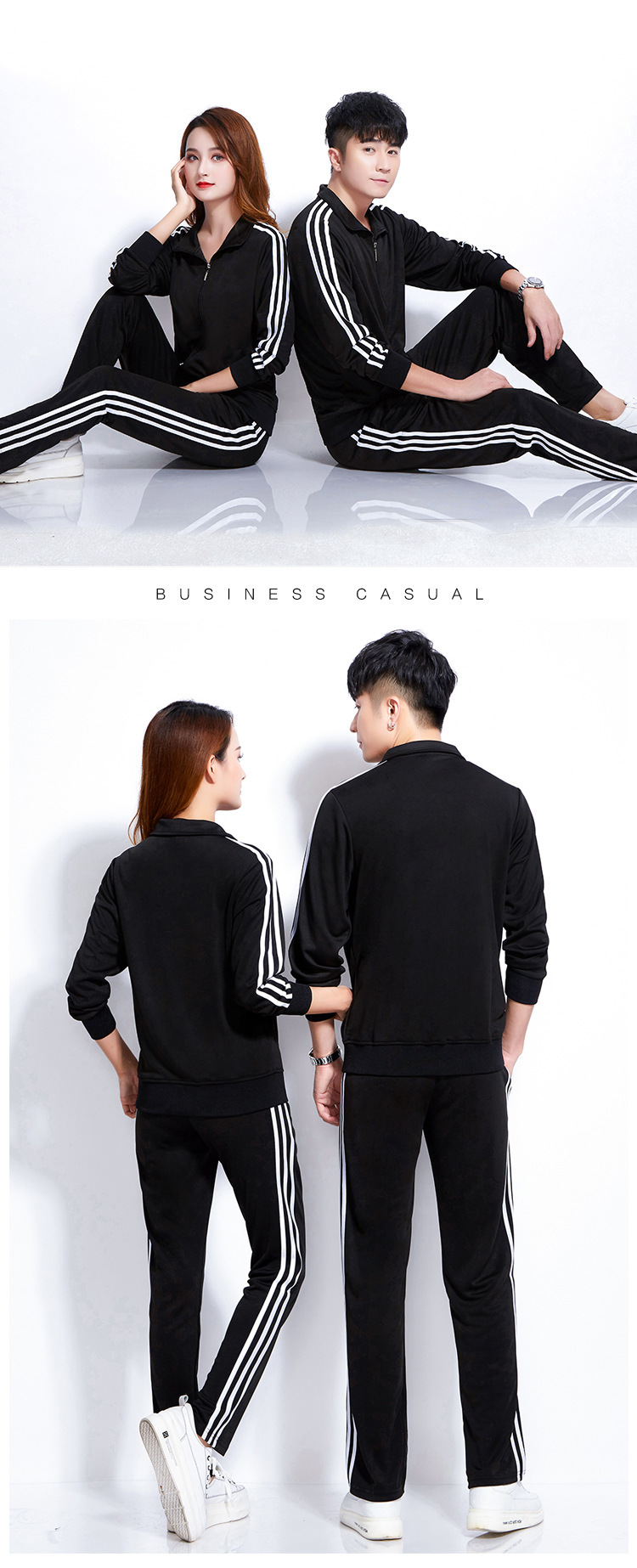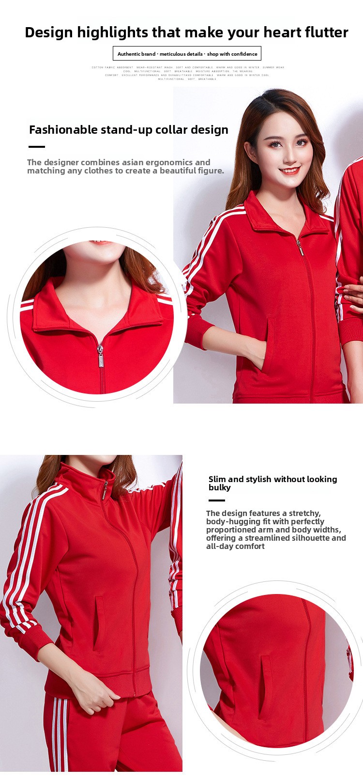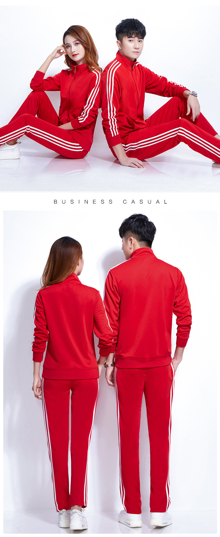 Design: Stand collar and straight-leg pants provide a modern, versatile look suitable for various occasions.