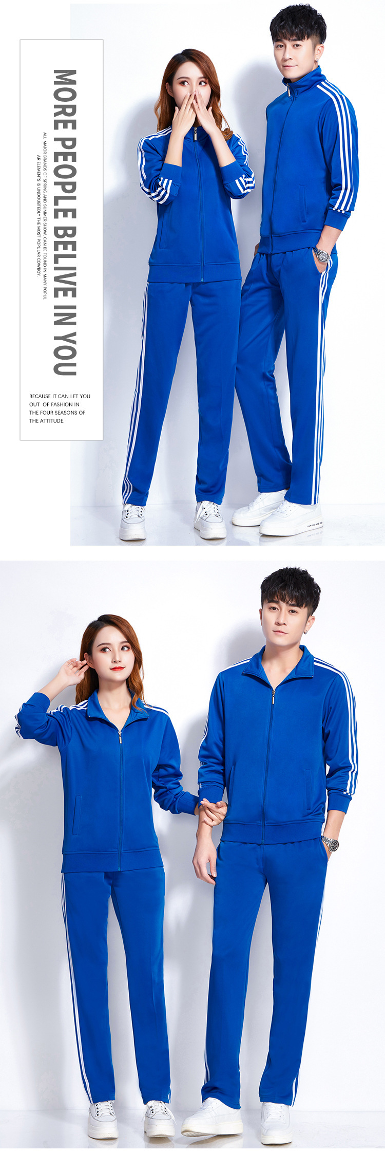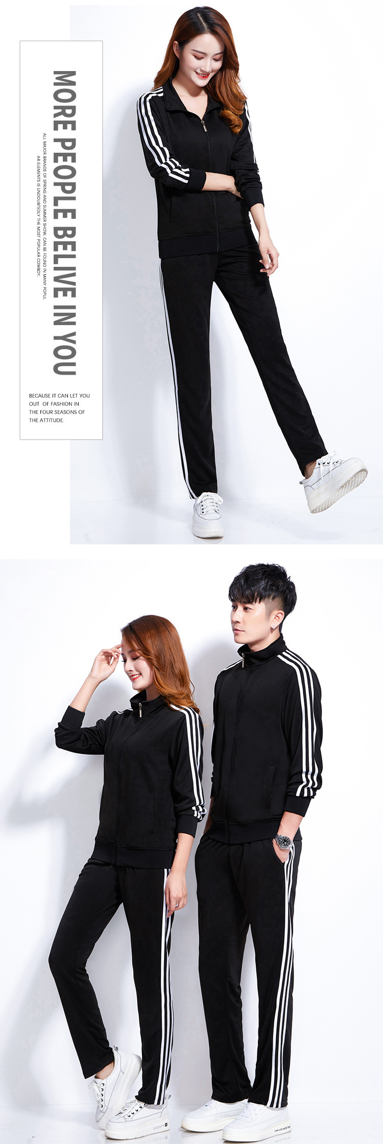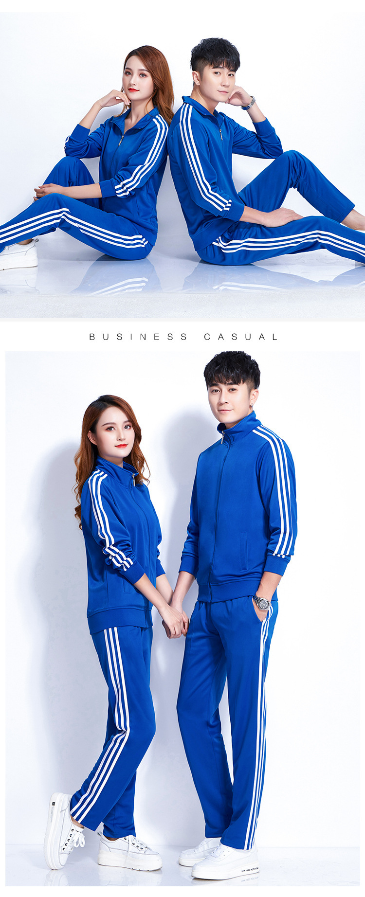 Design: Stand collar and straight-leg pants provide a modern, versatile look suitable for various occasions.