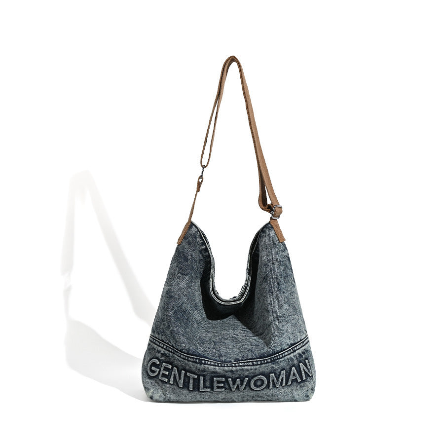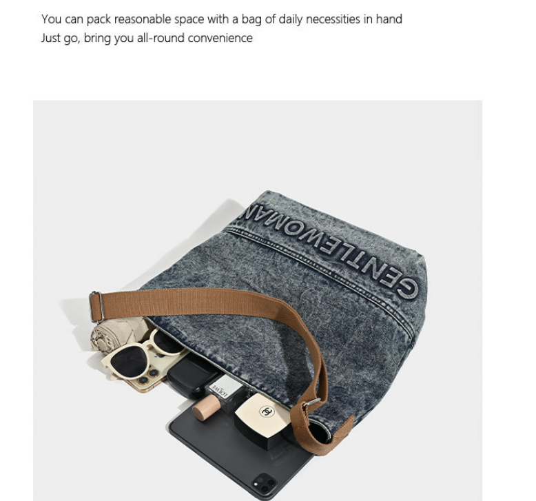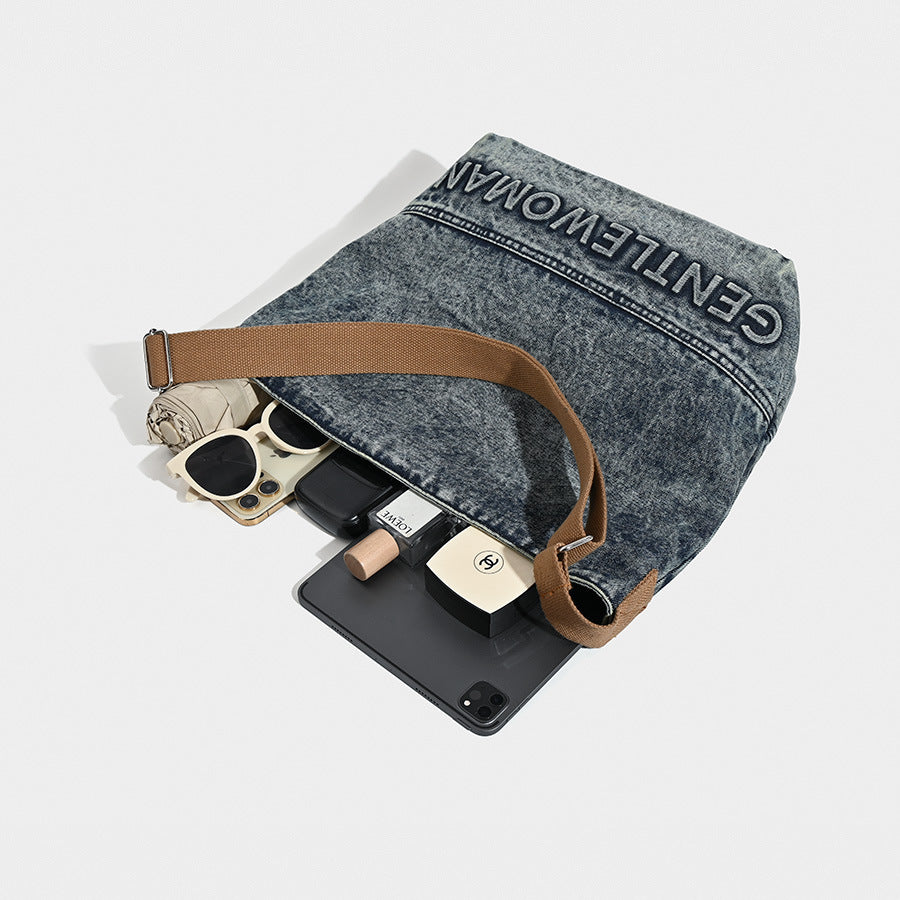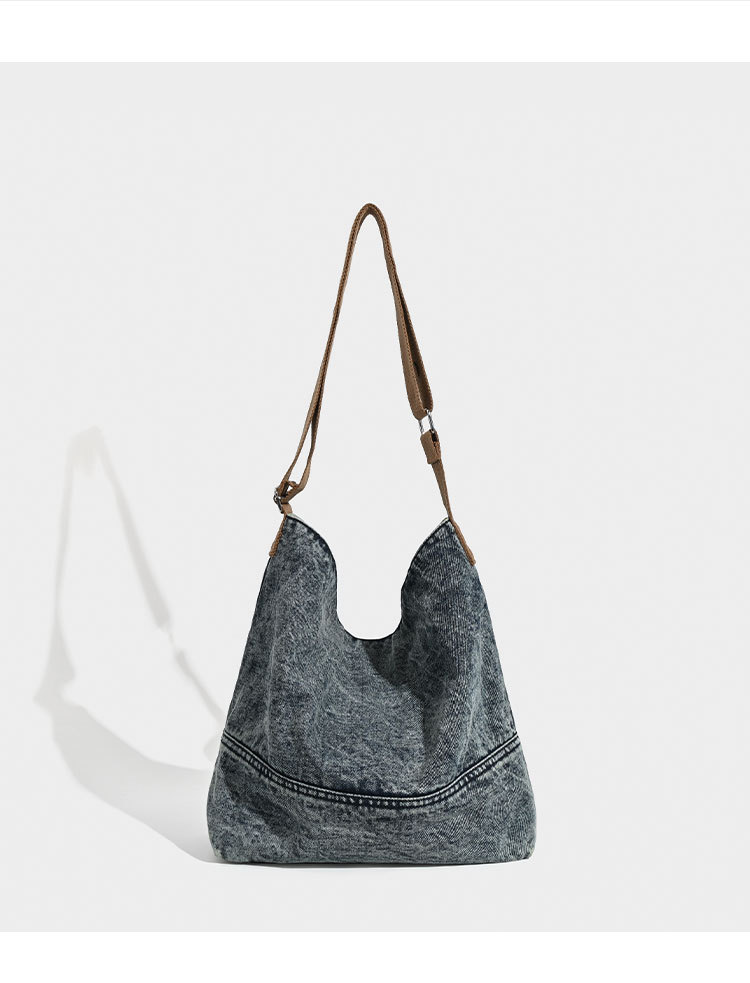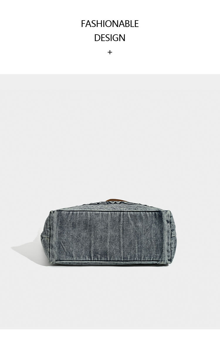 Washed Denim Tote Bag with Printing Design