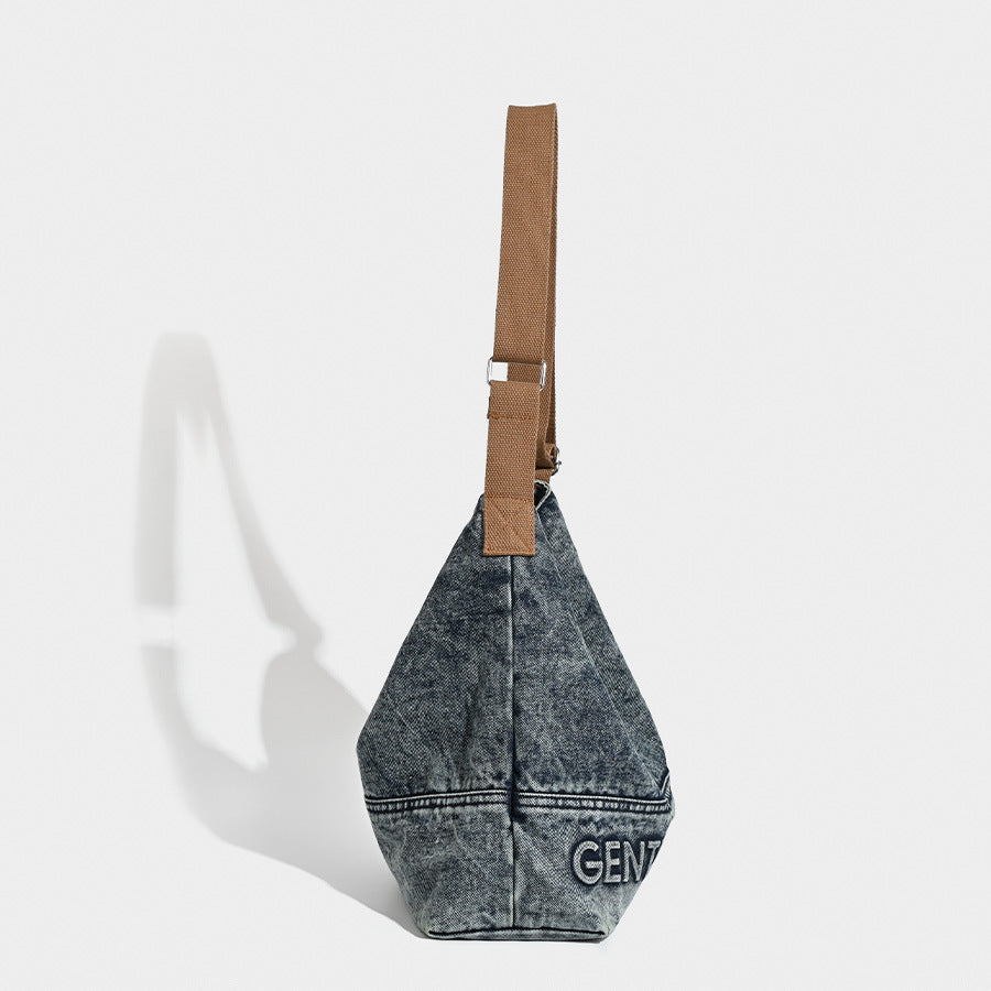 Material: Denim (outer), Polyester (lining)