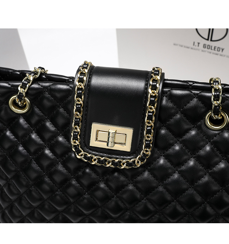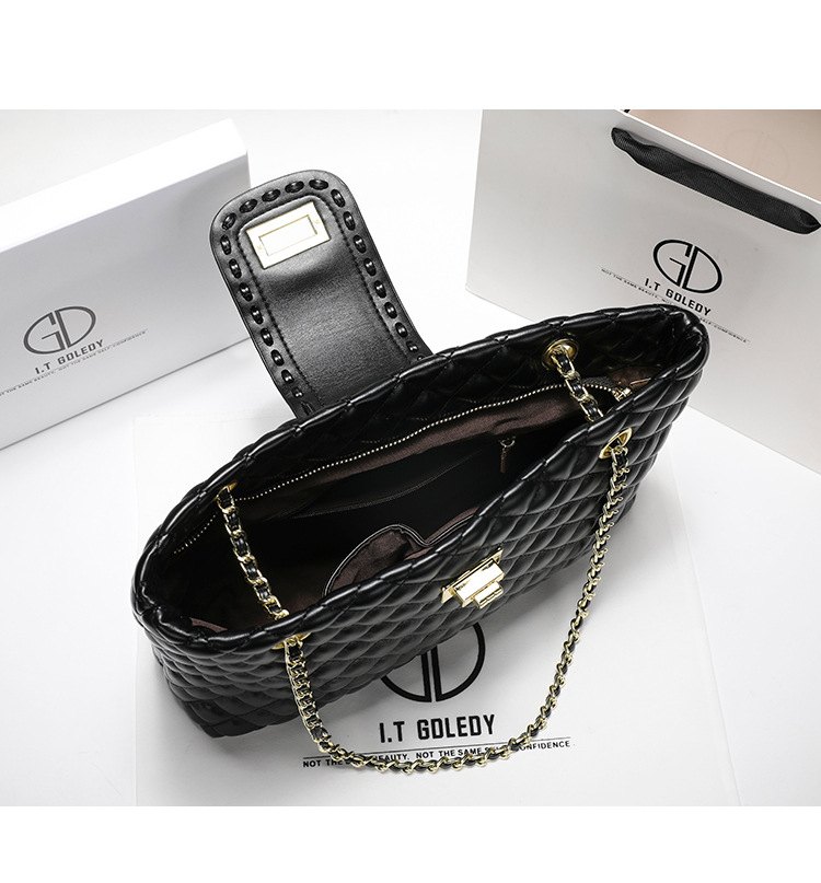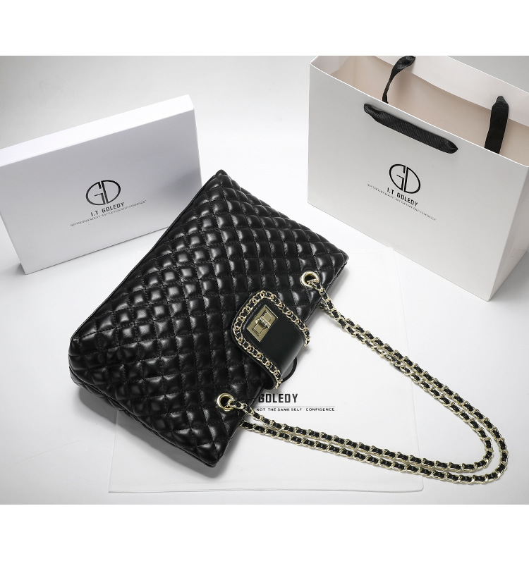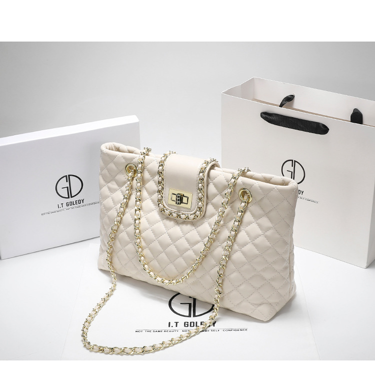 Color Options: Black [gold chain square lock], Creamy-white [gold chain square lock], Black [gun-color chain square lock], Black [gun-color chain G-lock], Creamy-white [gun-color chain G-lock]