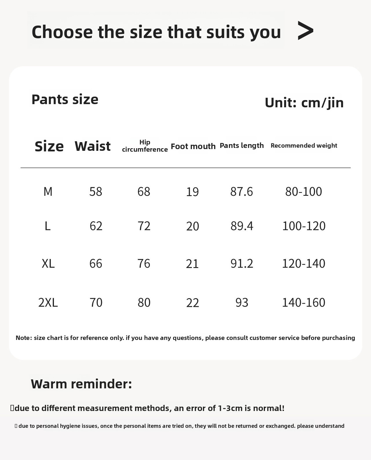 Sizes: M (40-50kg), L (50-60kg), XL (60-70kg), 2XL (70-80kg)