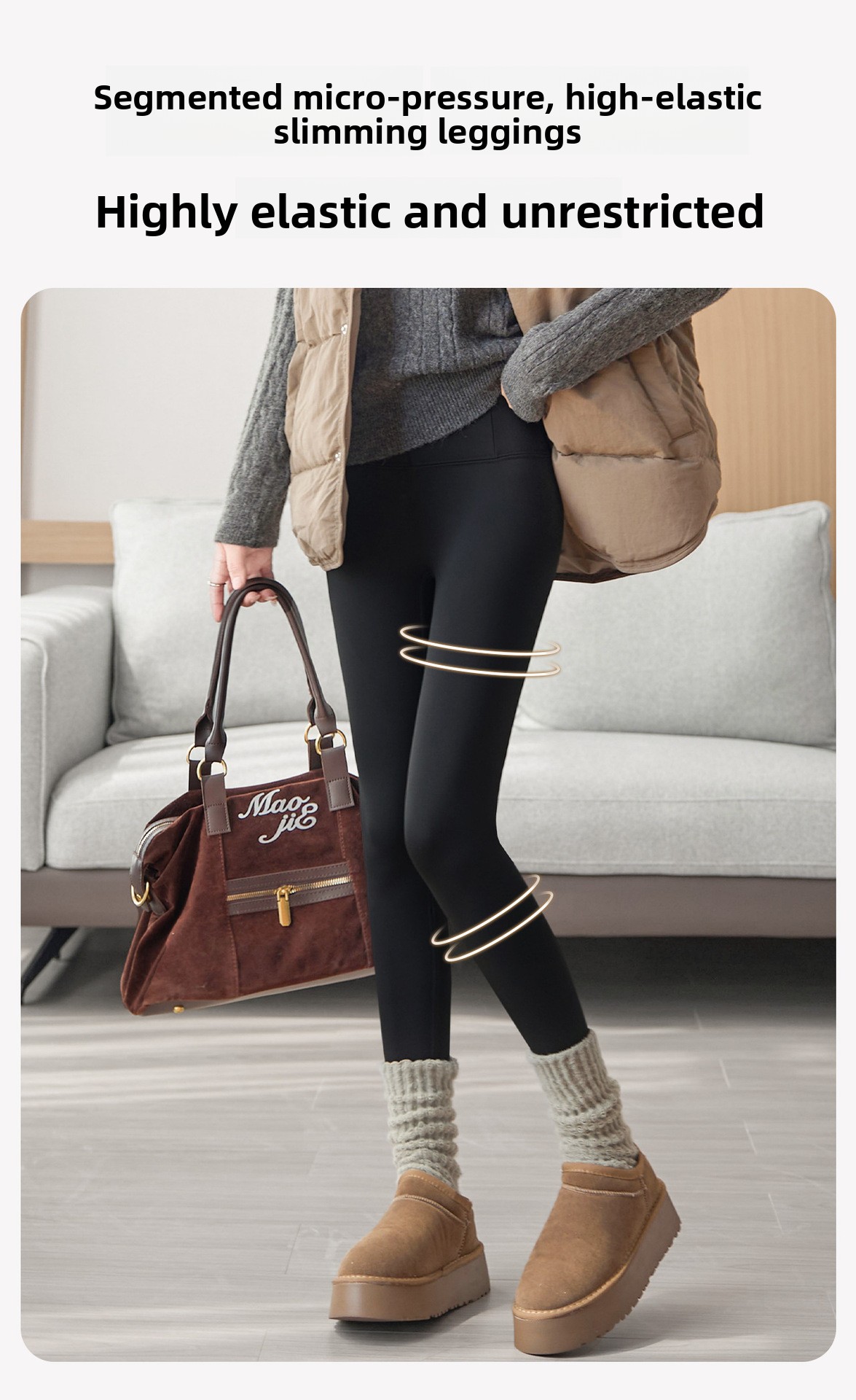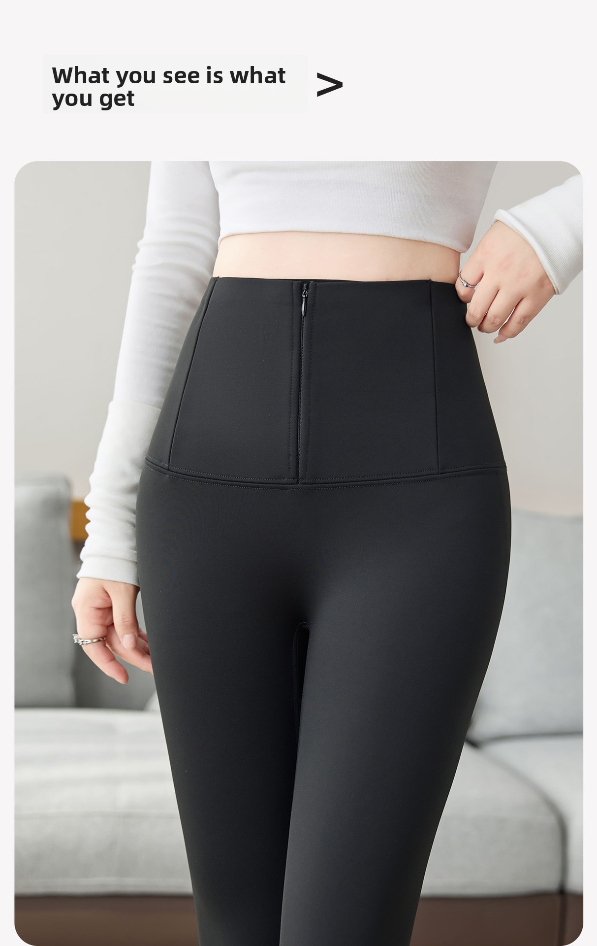 Features: Slim, high elasticity, zipper details
