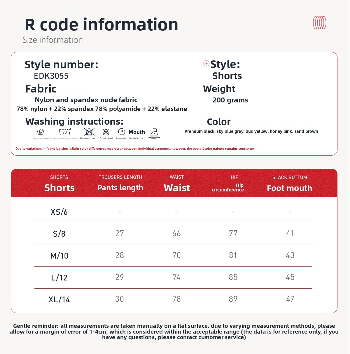 Material: 78% nylon, 22% spandex