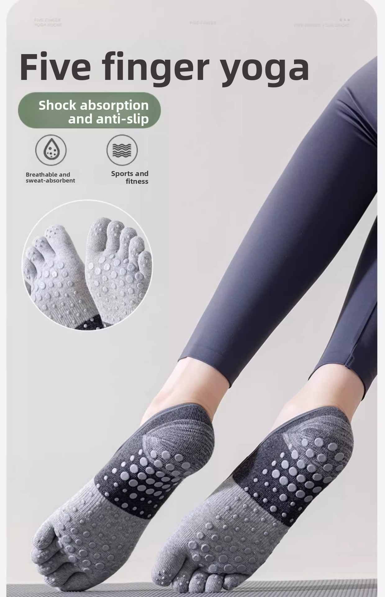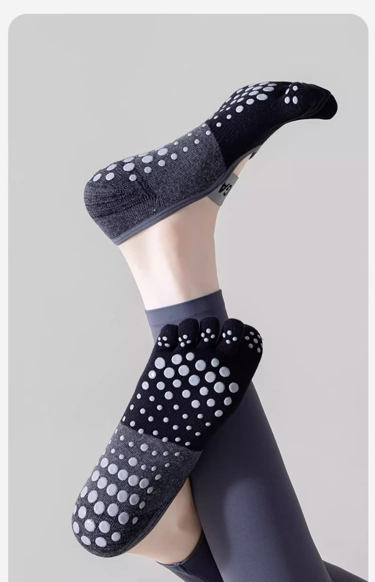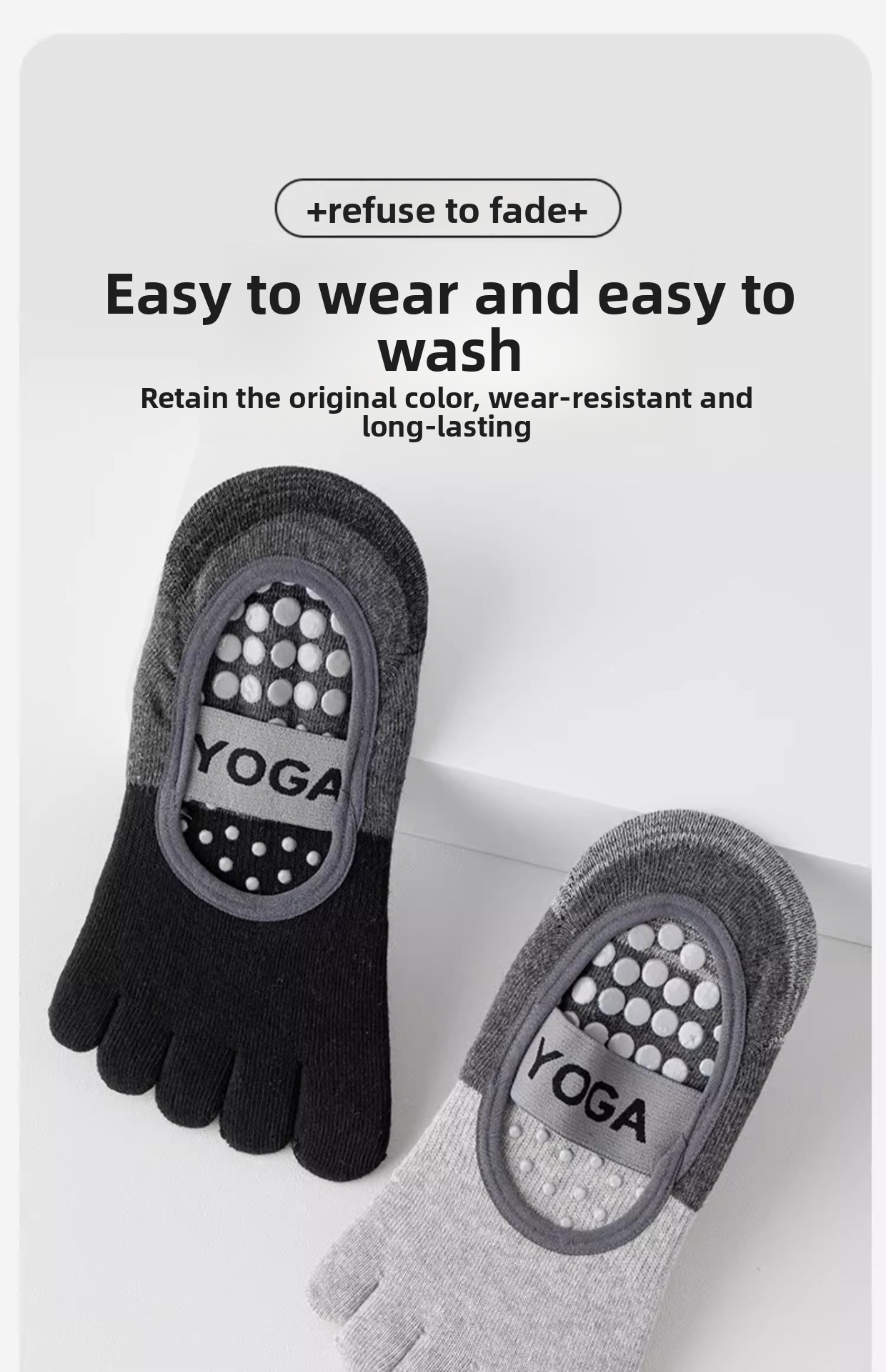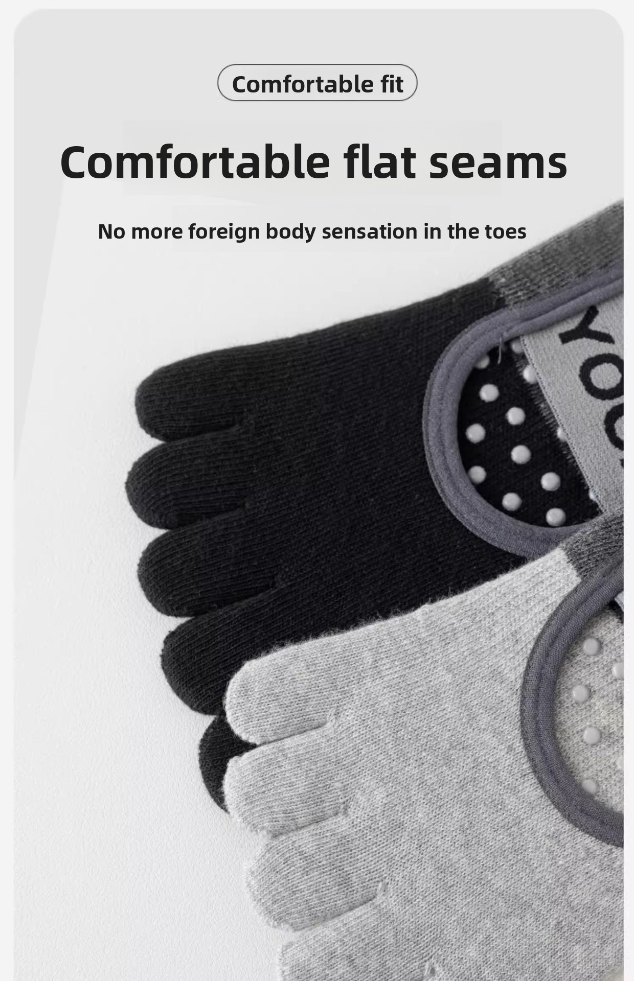 Five-toe design for enhanced flexibility and grip during yoga practice.