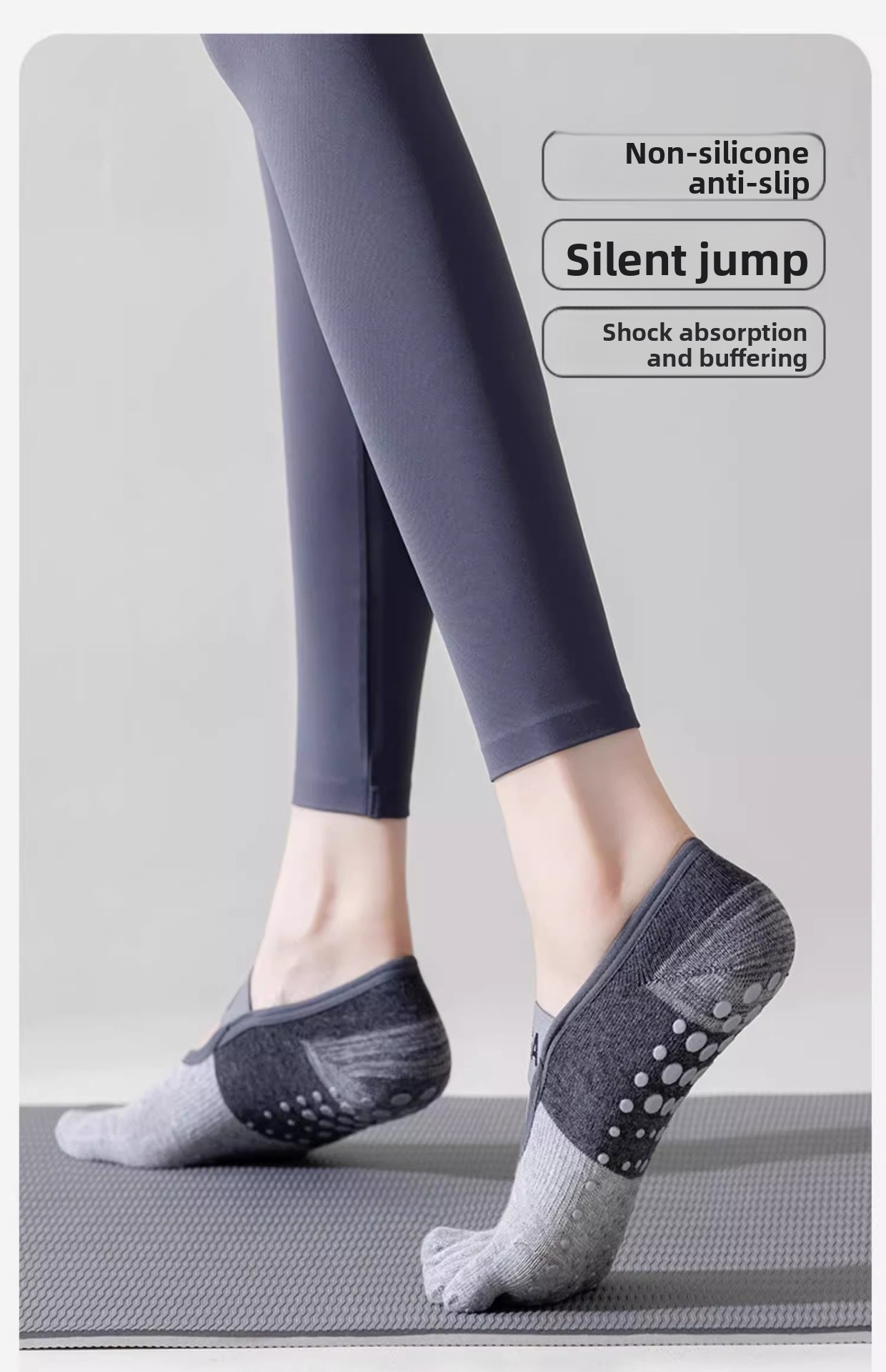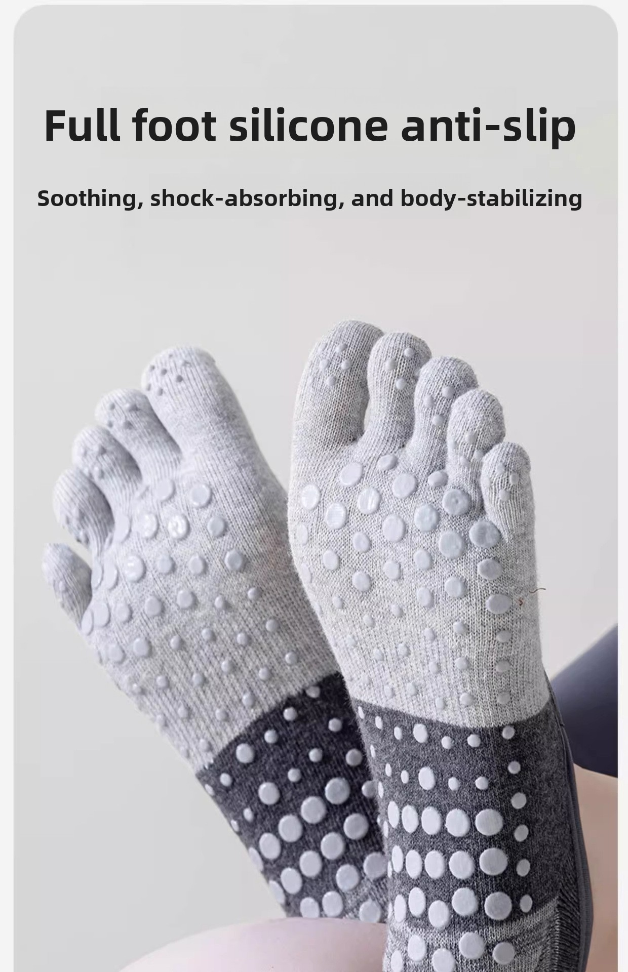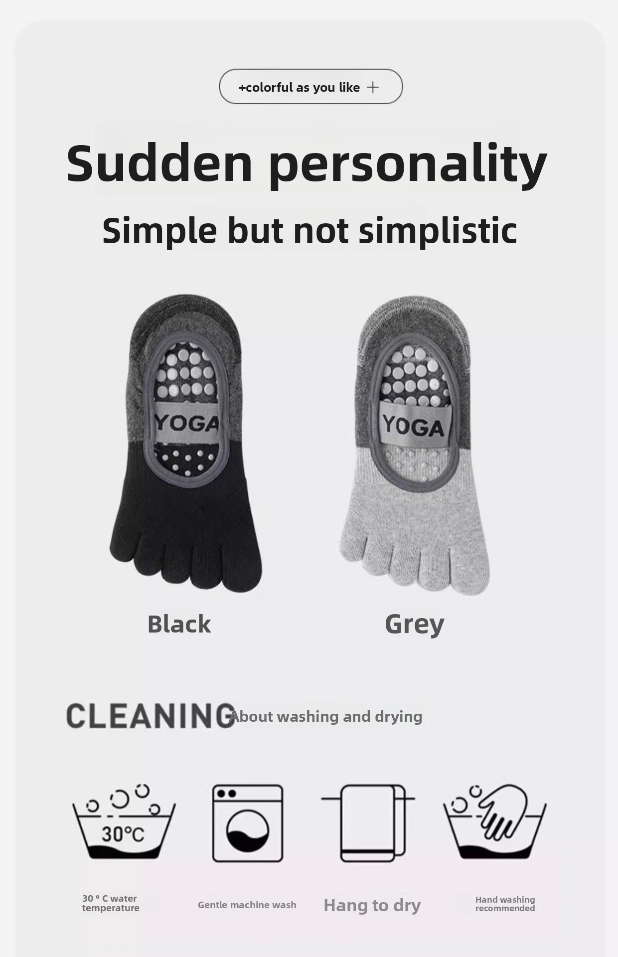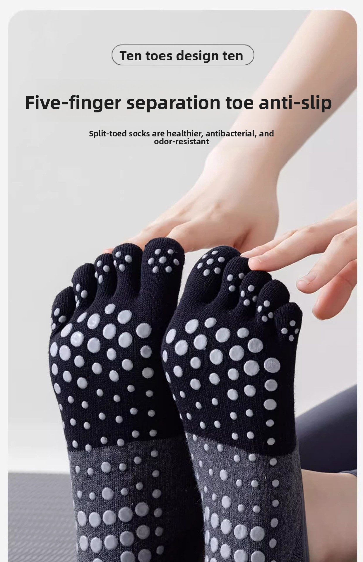 Five-toe design for enhanced flexibility and grip during yoga practice.